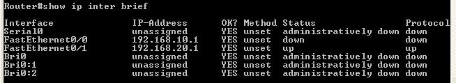 Router# show ip interface brief [invio] (vedi screenshot sottostante)