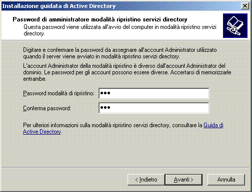 all'utility "Active Directory Restore Mode" utile per ripristinare (ad esempio) utenti erroneamente cancellati dal sistema.