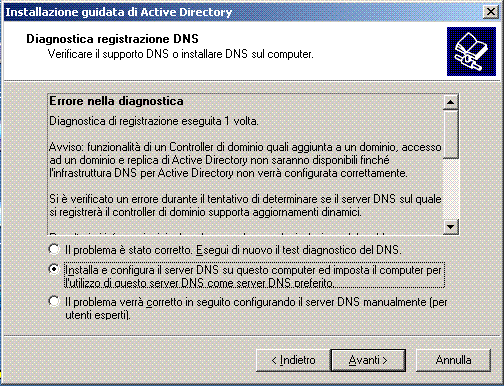 Al passo successivo verrà segnalato un errore di assenza del server DNS ma scegliamo