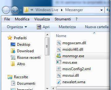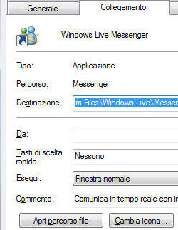 "Windows Live Messenger"4) Si apriranno le proprietà e cliccare sul tasto "Apri percorso file" 5) Si aprirà la cartella (directory) dove c'è l'eseguibile del