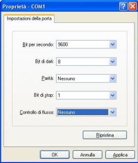 Su "Connetti" selezioniamo la porta COM1 o COM2 (ossia la seriale dove abbiamo attaccato il Router al PC) e diamo OK, si aprirà una schermata con dei parametri che dobbiamo impostare esattamente come in figura 3.