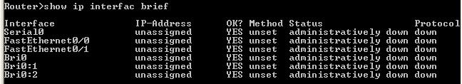 Il seguente comando mostra tutte le interfacce di cui è composto il nostro router e il loro stato (up o down).