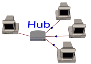 Con il termine "hub" ci si riferisce a volte ad un componente dell'apparecchiatura di rete che collega assieme i PC, ma che in effetti funge da ripetitore. L'hub trasmette o ripete tutte le informazioni che riceve, a tutte le porte.