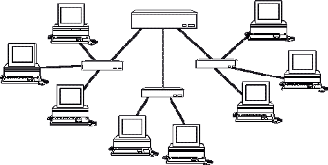 Più reti a stella sono collegate tramite cavi a bus lineari.