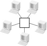 I computer sono connessi ad un componente centrale chiamato Hub. I dati sono inviati dal computer trasmittente attraverso l’Hub a tutti i computer della rete.