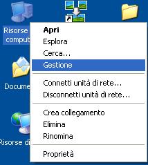 Per creare un utente, individuare l'icona "Risorse del Computer" e con il tasto destro del mouse selezionare la voce "Gestione" ...