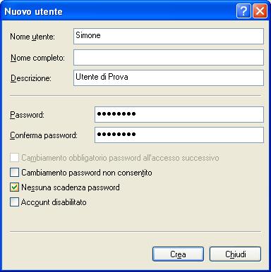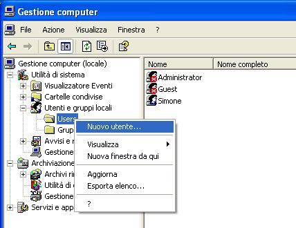 ...poi cliccare su "Nuovo utente..." come da figura seguente...
