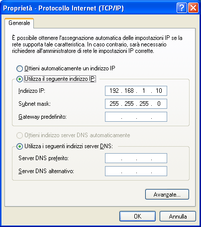 Ripetere lo stesso procedimento sul secondo computer modificando solo i parametri del TCP/IP impostandoli come in figura C