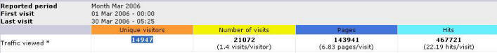 Il seguente è uno screenshot delle statistiche di Marzo 2006, dopo il Restyling 2006 del Portale: